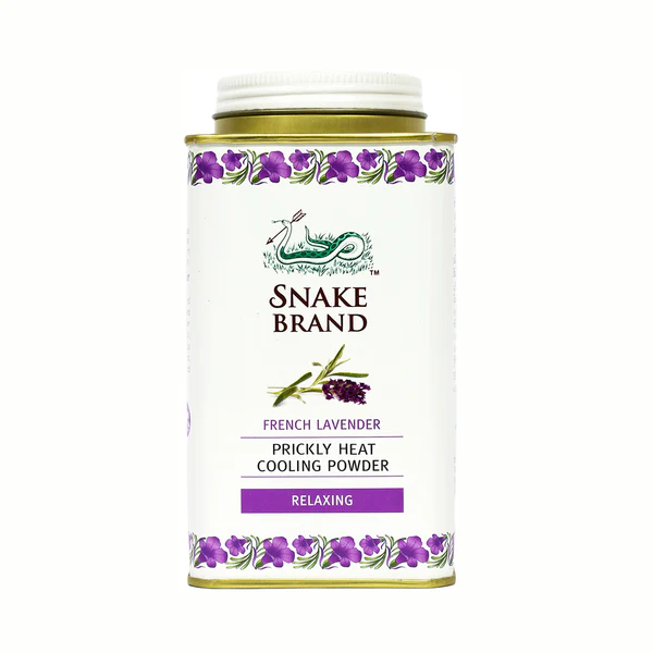بودرة تبريد من ماركة Snake Brand التايلاندية الشهيرة، بنكهة اللافندر المريحة للأعصاب. مصممة خصيصًا لتخفيف حرارة الجسم والحكة الناتجة عن الطفح الحراري أو التعرق الزائد الفوائد: